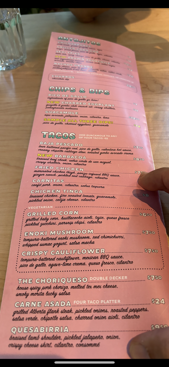 “ First time in Vancouver and I’m so happy I stopped off at this place! This cute little spot has a lot of character. My friend and I had a few of the mushroom and carnitas tacos.. very delicious and a good price during happy hour! The staff here was quite engaging with the customers, making it feel more homey. Shout out to the one and only Dave!! You are truly amazing!! He played geography trivia with us all nice while serving us fantastic margs and sangria. Could not have asked for a more perfect night. Let’s gooooo! ”